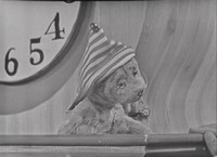 In the Neighborhood of Make-Believe, Grandpere welcomes viewers by singing his own French version of the Why Hi Song. Joey Hollingsworth dances to the Eiffel Tower where he exchanges pleasantries with Grandpere before dancing on to Daniel's clock. At the clock, Mr. Hollingsworth shares with Daniel Striped Tiger that he is not on a business trip today. Instead, he is in "first footin'" in Make-Believe. He goes on to explain that first footin' is an old Scottish custom in which people visit their best friends at the start of a new year and give them a little present so that they might "have good luck all through the year." Mr. Hollingsworth suggests that these can be small gifts of kindness but the important part is putting "your foot in[side] their door at the first of every year" -- hence, the term "first footin'." Daniel offers viewers some ideas on how they might go first footin' and suggests that they take a smile with them. He goes on to sing A Smile's the Style while Mr. Hollingsworth dances. Before departing, Mr. Hollingsworth gives Daniel his gift -- a neighbor hood (a hood for a neighbor) -- which he places on Daniel's head. At the oak tree, Mr. Hollingsworth gives neighbor hoods before moving on to the castle where King Friday XIII is offended that he was not the first recipient of a first footin' gift. Mr. Hollingsworth placates the king by explaining that his castle is technically in Calendarland -- a neighboring land to Make-Believe. As such, King Friday receives his own special gift -- a neighbor ring. Along with the ring, Mr. Hollingsworth offers King Friday a "free ride on the merry-go-round" which he provides by dancing in a circle near the castle. Back at the house, Mister Rogers makes his own suggestions on how viewers might give first footin' presents to those they care about. He closes by singing Tomorrow with the final line slightly altered: "We'll say a very happy new year to you." Notes