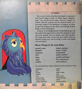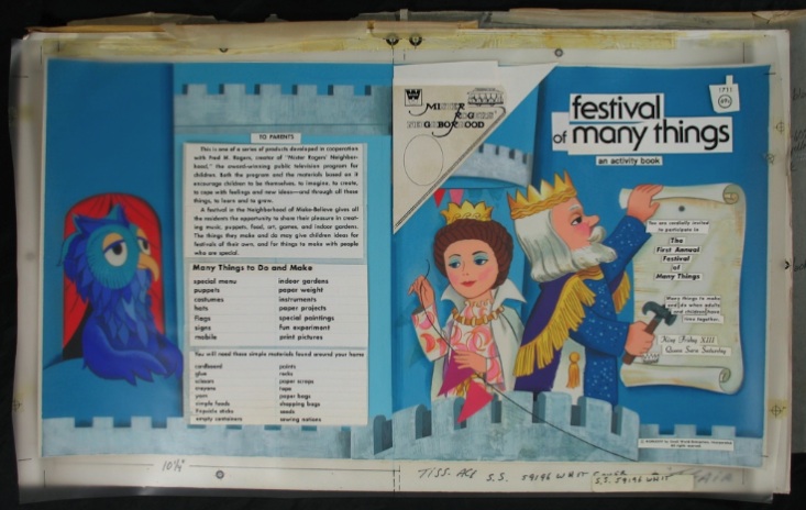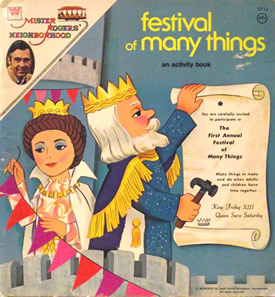 DescriptionFestival of Many Things is an activity book filled with fun ideas presented by Neighborhood of Make-Believe characters. All of the activities in this book follow the general storyline of participation in the King and Queen's Festival of Many Things. As can be seen on the cover, the royal couple has invited their Neighbors and young readers to the festival: