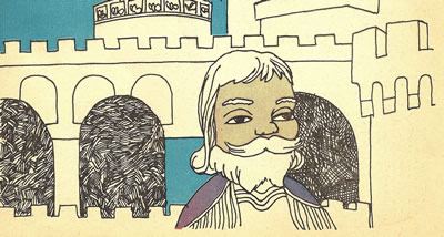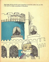 Before taking a look at some of the specific activities in this book, there are a few interesting illustrations to look at. First, have you ever wondered what the inside of Daniel's clock looks like? While the picture below may not be a to-scale drawing of what the mechanical side of the clock may look like, it still provides something fun to consider. King Friday was rarely, if ever, seen without his crown -- or at least some sort of hat -- on his head. One page in this activity book shows us what King Friday's royal hair style may have looked like under his kingly crown.