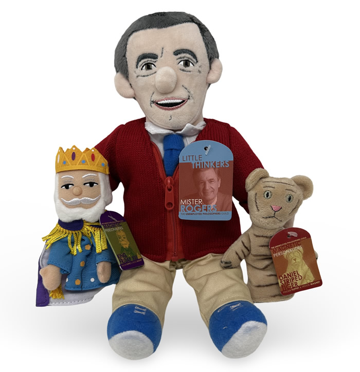 Little Thinker and Magnetic PersonalitiesThe Neighborhood Archive participates in the Amazon Associates program and the eBay Partner Network -- affiliate advertising opportunities which provides the possibility to earn advertising fees in support of this site by linking to Amazon and eBay. Little Thinkers: Mister RogersDate: 2024 The Mister Rogers plush measures approximately 12" tall and features a fully functional zipper on the front of the sweater. The item is noticeably "bottom heavy" which keeps it stable when places in a sitting position. TM & © McFeely-Rogers Foundation Magnetic Personalities: Daniel Striped TigerDate: 2024 The Magnetic Personalities measure approximately 4" tall and include a magnet inside the head of each figure. This makes them usable as a finger puppet or a decorative magnet. TM & © McFeely-Rogers Foundation Magnetic Personalities: King Friday XIIIDate: 2024 TM & © McFeely-Rogers Foundation |