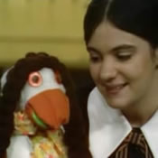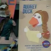 Audrey DuckFirst MRN Appearance: 1172 Audrey Duck is an occasional visitor to both the real Neighborhood and the Neighborhood of Make-Believe. Audrey somtimes travels with her puppeteer Susan Linn and other times with her lion friend, Catalion. In the Neighborhood of Make-Believe, after some encouragement from her friends, Audrey Duck once shared some of her original poetry at a public reading held at the castle.[1] Earlier that week, however, her visit was not as enjoyable when she was sprayed by Mr. Skunk. ImagesPuppet / Costume VariationsIn her earlier days, Audrey Duck had darker eyes and the inner part of her mouth was a lighter shade of green. SongsAppearancesMister Rogers' Neighborhood Home Video References