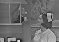 Mr. McFeely stops by with a delivery for Henrietta Pussycat which Mister Rogers gladly delivers by way of the Neighborhood Trolley. In the Neighborhood of Make-Believe, Nurse Miller opens the package to find a pair of blue eye glasses for Henrietta Pussycat. With her new glasses on, Henrietta passes her eye exam with flying colors before X the Owl expresses his desire for glasses of his own. Nurse Miller convinces X otherwise by singing Everybody's Fancy. Moving on to the factory, Nurse Miller delivers a prescription to Corney who asks to schedule an eye examination. Back at the house, Mister Rogers takes out a whale hand puppet named Whaley and places several pair of eye glasses on it. After convincing Whaley that he does not need glasses, Mister Rogers sings What Would You Like To Do Today. The day concludes with a visit from Scott, a young friend with a pet raccoon named Willie. NotesAfter Nurse Miller hands over the prescription bottle to Corney, he holds it as they continue talking. At one point, the bottle accidentally drops from his hands to the ground and has to be retrieved by Nurse Miller. Appearing In This EpisodeGuests