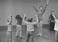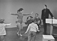 After the film, Mister Rogers sings Everybody's Fancy before Mr. McFeely stops by and describes how he rides his delivery bicycle. Mister Rogers is invited to "Miss Nelson and Bruce's dance studio" to see a musical computer. At the dance studio, Mister Rogers visits with Bruce Haack who demonstrates a synthesizer which allows him to create various sounds. Miss Nelson arrives with a group of young dance students who spin as they sing a song about wheels. The children continue moving and singing to the various sounds of the synthesizer as they pretend to ride bicycles and pretend that they are cats. Mr. McFeely finds Mister Rogers at the dance studio to tell him that there is a surprise for him back at the house. Upon returning to his house, Mister Rogers enters to find his cat, Blackberry, waiting for him inside. NotesMister Rogers mentions Mr. McFeely's tendency to hurry and does a quick, but humorous impression of him. Unlike most episodes of Mister Rogers' Neighborhood, this episode does not include a Make-Believe segment. Bruce Haack is a well-known name within electronic music circles. For more on Mr. Haack visit brucehaack.com. Blackberry was likely Fred Rogers' cat: "Sometimes she visits me here at the studio." Appearing In This EpisodeGuests