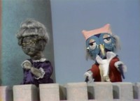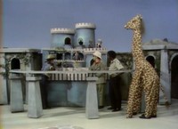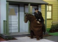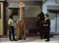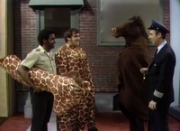 Seeing them in costume, Mister Rogers tells Betty Aberlin and Joe Negri that "they are a fine horse." In clear reference to the Neighborhood of Make-Believe's Ino A. Horse, they respond, "I know!" The giraffe costume is the same one used in Episode 1309, Episode 1334, and Episode 1483. Lady Aberlin and Handyman Negri wear the horse costume again in Episode 1260 and Episode 1283. A wide variety of costumes are worn in the Neighborhood of Make-Believe: