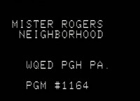 Episode CreditsProduced by WQED Pittsburgh, Pennsylvania in association with Small World Enterprises Inc. for N.E.T. Created by Fred Rogers Production funds for this television visit were provided by a grant from the Sears Roebuck Foundation and the Corporation for Public Broadcasting © 1971 National Educational Television and Radio Center |