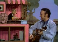 In the Neighborhood of Make-Believe, Handyman Negri moves through the Neighborhood playing his guitar and singing songs. After Corney joins him in singing I'm a Man Who Manufactures, Handyman Negri moves on to the tree where X the Owl teaches him the song from Owl Correspondence School. X receives a special delivery (by way of a floating red object) from the OCS which includes a tiny record and a book. The instructions explain that the record should be played as the book is read -- the first lesson in Owl Music History. The record features several examples of the sounds made by owls. Moving on to Daniel's clock, Handyman Negri finds that Daniel Striped Tiger has hung a sign that reads: "No Dogs Allowed. This means you, Bob Dog!" Daniel wonders whether or not Bob Dog is a tame animal. Back at the house, Mister Rogers suggests that Daniel's fear might be coming from the previous day when he scratched Handyman Negri: "Sometimes if you hurt somebody, you're afraid that other people might hurt you." Joe Negri stops by with a book Mister Rogers calls Investigating Science With Rubber Bands -- a book full of ways rubber bands can teach scientific lessons. In the kitchen, Mister Rogers uses rubber bands to make a homemade musical instrument. He concludes with a short animated film about a bouncing ball. NotesAfter Joe Negri stops by with the rubber band book, Mister Rogers asks viewers, "Remember that time we used rubber bands to make a bouncing ball?" This is in reference to Episode 1198. The bouncing ball animation is also seen in Episode 1264. Investigating Science With Rubber Bands is a book by Laurence B. White and is available for purchase on Amazon.com. Roger Tory Peterson's Field Guide to Bird Songs was used for the audio portion of X the Owl's OCS lesson and is available for purchase on Amazon.com. Appearing In This EpisodeSongs