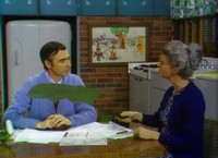 Mrs. McFeely stops by with a large philodendron leaf that she got from the Neighborhood conseratory. She joins Mister Rogers in the kitchen where she makes a rubbing of her own. Mrs. McFeely invites Mister Rogers to her house where she has an animal to show him. In the Neighborhood of Make-Believe, Mrs. McFeely is helping Lady Elaine post her F.F.J. (Flying For Jupiter) signs as Lady Elaine prepares for a trip to Jupiter. Mrs. McFeely is a bit skeptical as Lady Elaine decides that she will use leaves as her method of transportation. At the tree, Mrs. McFeely is looking to gather some leaves for Lady Elaine when Francois Clemmons stops by representing the Owl Correspondence School. Mr. Clemmons is teaching a new course through OCS -- Early American Owl History. Lady Elaine accepts 99 leaves from Mrs. McFeely which she will use to take her to Jupiter. Back at the house, Mister Rogers talks about history and talks about his own background before singing Everybody Has a History. Visiting the McFeely house, Mister Rogers finds Mr. McFeely tending to a fern on the front porch. As they wait for Mrs. McFeely to return, they make a rubbing of a wicker table. When Mrs. McFeely arrives, everyone goes inside where the McFeelys have a young caiman on loan from the Neighborhood zoo. NotesMrs. McFeely explains that the Neighborhood Zoo recently had a litter of caimans and were unable to care for all of them right away. This is how the McFeelys came to have a caiman in their home. Appearing In This EpisodeSongs