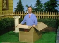 At Bob Trow's workshop, Mr. Trow tries the marble game and decides that he could make something similar out of wood. He shows Mister Rogers a paneled structure he has repaired which could be used as a pretend store or even a puppet stage. Mr. McFeely arrives to take the piece back to its owners at the school. He mentions that Mrs. McFeely has been under the weather but is feeling better now. Returning to the house, Mister Rogers finds that Mr. McFeely has left a large empty box for him outside. He thinks of several creative ways to play with the box. In the Neighborhood of Make-Believe, the sun is rising and Queen Sara is taking a walk with Prince Tuesday. Yoshi Ito arrives to take King Friday on an early morning flight but he would rather stay with Prince Tuesday who wants to play with his father. In his place, Queen Sara joins Ms. Ito for the plane ride while Bob Dog uses his blanket to pretend that he is Super Dog. Returning from the flight, Queen Sara begins to show signs of a cold. Back at the house, Mister Rogers talks about how Bob Dog was nervous about the thought of flying in a plane. He suggests that playing about things that concern you is a good way to prepare for them. Mister Rogers concludes by singing I Did Too. NotesBefore having viewers guess what he is doing, Mister Rogers offers these instructions: "If you can hear very well, close your eyes and see if you can tell which one of these I'm using." By subtling suggesting that some people may not hear well, it is safe to assume this was a way validating those viewers who may have difficulty participating in such an activity. Prince Tuesday has begun speaking -- using words like "mama" and "dada." As the Trolley returns to the house from Make-Believe, it slightly derails from the track as it turns the corner into the tunnel. Appearing In This Episode
