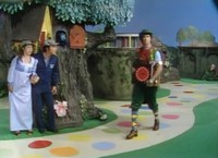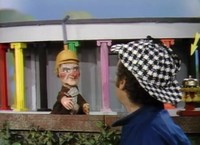 Mr. McFeely stops by with a few hats and a book ordered by Mister Rogers. Trying on the two hats, he shows that one is too small, one is too big, and his own hat is just the right size. Mister Rogers and Mr. McFeely read the book together -- Goldilocks and the Three Bears. In the Neighborhood of Make-Believe, the clock is still missing and Daniel Striped Tiger is staying with Grandpere at the tower. King Friday XIII asks Handyman Negri to retrieve two detective hats from the castle's D.H. Room. The hats are given to Handyman Negri and Lady Aberlin who are given the task of finding Daniel's missing clock. Lady Elaine Fairchilde -- wearing a periscope hat -- is keeping a watchful eye herself. Mr. Allmine visits the castle where he shows King Friday his book of pictures -- all of which he claims to be his own. He explains that he has his own kingdom full of many things -- including clocks. Back at the house, Mister Rogers sings Sometimes People Are Good. Appearing In This Episode