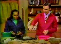 At Elsie Neal's craft shop, Mister Rogers helps to create a miniature rock garden -- or as Mrs. McFeely calls it, a "rockary." Upon his arrival at the shop, Mrs. McFeely is finishing a rockary of her own. Returning home, Mister Rogers shows Van Gogh's "The Harvest" on Picture Picture and talks about how seeds are planted and grow. In the Neighborhood of Make-Believe, the Potato Harvest Festival has arrived. Chef Brockett and Mr. McFeely help to prepare samples of Lady Elaine's brown syrup. At Someplace Else, the potatoes are being harvested and everyone heads to the windmill to enjoy Chef Brockett's waffles with Lady Elaine's syrup. Musical entertainment at the festival is provided by the Dixie Travelers. Back at the house, Mister Rogers puts away his spare household items before concluding with a short discussion about Thanksgiving and a short song to the tune of Tree Tree Tree: "Thank you, God, for food to eat NotesUpon Mister Rogers' arrival at Elsie Neal's craft shop, one member of the Dixie Travelers is there picking up a shirt. As he leaves, Elsie mentions that the other band members have already picked up their shirts which the entire band can be seen wearing later in the Neighborhood of Make-Believe. As seen in other episodes, Chef Brockett needed his kitchen to be quiet. In this particular episode, as Mr. McFeely and Chef Brockett are helping Lady Elaine fill her bottles with syrup, something very subtle takes place. There is not enough in the pan to fill the third bottle so Mr. McFeely has to reach for a second pan of syrup. This creates a few seconds of unplanned silence during which Fred Rogers ad libs a quiet line of dialogue from Lady Elaine. As soon as her voice is heard, Chef Brockett very quickly puts his finger to his mouth to quiet Lady Elaine -- for it's silence that he asks for in his kitchen. Appearing In This Episode