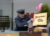 At the McFeelys' house, Mr. McFeely returns the dog to its owners while Mrs. McFeely shows Mister Rogers her new recorder. Using the new and old recorders, Mister Rogers and Mrs. McFeely play Row Row Row Your Boat on the recorder. Mrs. McFeely also plays a more complicated piece by Mozart. In the Neighborhood of Make-Believe, the power has been restored and MGR-TV is back on the air. Lady Elaine Fairchilde and Lady Aberlin do their best to fill time while they wait for Mr. McFeely to arrive for his own show. With his daily deliveries complete, Mr. McFeely presents a new program on MGR-TV called Deliveries I Have Made. After showing many items he has delivered, Mr. McFeely shares a film about deliver he once made to Esther Island. He concludes the show by singing Speedy Delivery. Back at the house, Mister Rogers creates a drawing as he listens to music. NotesMister Rogers is already in his sweater and sneakers when he arrives with Rondo the St. Bernard. Rondo is owned by the Walsh family -- "Mr. and Mrs. Walsh and Laura and James." On MGR-TV, Lady Abelrin dances to I Like To Take My Time. Some fun background music is provided by Johnny Costa during Mr. McFeely's MGR program. Mr. McFeely even recognizes Mr. Costa at one point: "Thank you, Mr. Costa. Thank you." The Eshter Island video is also seen on Episode 1025. A Perfectly Beautiful Day plays as Mister Rogers draws. Appearing In This EpisodeSongsImages