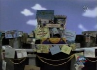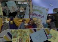 Calling Mr. McFeely for assistance, Mister Rogers is further disappointed when he cannont come over right away. To deal with his frustrations, Mister Rogers sings What Do You Do and angrily draws a rainbow on a large pad of paper. In the Neighborhood of Make-Believe, the Draw the Neighborhood Contest is coming to and end as Lady Elaine is very confident her drawing on a boomerang will be chosen as the winner. Based on King Friday's previous hints, Lady Elaine believes that the surprise prize will be "all the gold in the world." Meanwhile, Neighbor Aber has a special attachment for the plane car that is supposed to make it rain in the Neighborhood. The final entries for the contest are delivered and Ana Platypus is announced as the winner. King Friday announces that the prize is a rainbow but Neighbor Aber's rain attachment did not work. Since anything is possibly in Make-Believe, however, Mr. Aber pretends a rainbow and the prize appears. Back at the house, Mister Rogers shows a film about how gold is processed before Mr. McFeely and "Guard Aber" stop by with some samples of real gold. After looking at the gold, Mr. McFeely uses a projector and a prism he has brought with him to make a rainbow for Mister Rogers. NotesThis episode is included on the DVD Kindness Collection. Appearing In This Episode