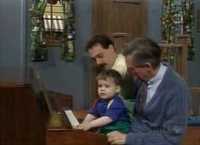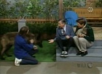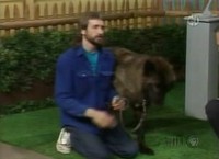 Using a cassette player he brought with him, Mister Rogers plays a recording of wolves howling. Chuck Aber stops by with Kent Weber and Mr. Weber's wolves -- Little Dancing Bear and Shaman. Mr. Weber explains that wolves are very shy creatures but wild animals are not good pets. In the Neighborhood of Make-Believe, Prince Tuesday is telling Lady Aberlin about his rag doll, Tome, coming to life. Neighbor Aber arrives wearing a wolf costume and announces that it is Wolf Week in Westwood. He asks Prince Tuesday if he would like to wear a smaller wolf costume but Tuesday refuses fearing that if he does, he might actually turn into a wolf. Lady Aberlin explains to Neighbor Aber about Tuesday's rag doll as Tome comes to life once again. Tome dances with Neighbor Aber to Look and Listen before Aber and Lady Aberlin begin looking for someone to wear the smaller wolf costume. At the tree, Henrietta Pussycat is vacuuming and is frightened when she sees Neighbor Aber in the wolf costume. She is too busy to be the smaller wolf and mentions that X is not at home: "Meow off meow fly somewhere." Ana Platypus is doing her homework and also passes on the offer to wear the little wolf costume. Daniel agrees to wear the costume and is excited to show it off to Prince Tuesday and Tome. At the castle, King Friday greets them all and invites them to the "Wonderful Watermelon Room" (the W Room) where Tuesday and Tome are waiting. Back at the house, Mister Rogers uses a towel to pretend that he is a wolf and mentions that he also uses a towel to play peek-a-boo with his grandson, Alexander. Mister Rogers' son Jim arrives with Alexander and they all sit together at the piano before looking at the Trolley. Appearing In This Episode