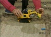 Moving to the living room, Mister Rogers sits at the couch to look at a book called Are You My Mother?. Part of the book features a backhoe which "snorts" at a baby bird looking for its mother. Mister Rogers mentions that he occasionally refers to backhoes as "snorts" because of that book. Mr. McFeely stops by a video about how people make toothpaste. In the Neighborhood of Make-Believe, Robert Troll rides a scooter to the tree as he looks for Princess Zelda. About to leave for work at the factory daycare center, Henrietta accepts a ride from Robert Troll on his scooter. At the factory, Hilda Dingleboarder mentions that the children at the daycare center have been frightened by "a big tiger" -- Lady Aberlin in costume. At the clock, Lady Aberlin is sad because she has been unintentionally scaring people. Although she wants to go back to being herself, part of Lady Aberlin wants to stay a tiger so she can be part of Daniel Tiger's family. Daniel explains that they are related by their hearts: "That's the way it is with a family of friends. They don't look alike. They feel for each other." With that, Lady Aberlin turns back into herself and removes the "UR" sticker from her head as she sings a line from You Are Special. Princess Zelda arrives and asks Lady Aberlin for some help finding information about a cousin named Princess Ella. At the castle, King Friday inquires about Lady Aberlins research on laughing. Robert Troll arrives with a book for Princess Zelda called Lives of Famous Princesses. A section of this book explains that Princess Ella was the real Cinderella. Back at the house, Mister Rogers talks about the many things that people can do with their mouths such as talking: "Do you know what's even more important than saying words? It's the things we do. The things that our hearts understand." NotesAre You My Mother? is a book by P.D. Eastman and is available for purchase through Amazon.com. Mr. McFeely leaves Mister Rogers with a very pleasant and postive comment: "Happiness to you in your life ahead!" After Henrietta agrees to take a ride on Robert Troll's scooter, she is ready to go (including a helmet on her head) before Robert Troll can circle the tree even once. As Mister Rogers talks about the many things that people can do with their mouths, he mentions whistling and briefly refers to the fact that he cannot whistle. A promotional kit provided in connection with this week of episodes included a Mister Rogers' Neighborhood toothbrush. This episode is included on the DVD Kindness Collection. Appearing In This Episode