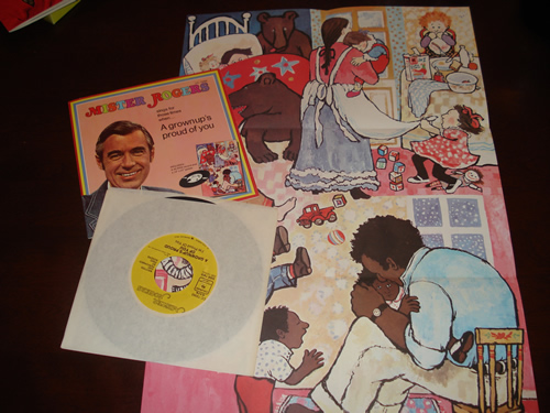 NotesOne in a box set of five 45 records -- each record packaged with its own poster. According to Mister Rogers in Episode 1321, this poster was created by Margaret Zimak.