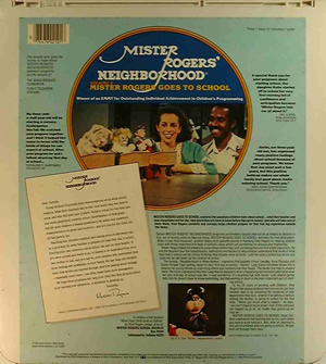 NotesThis video disc includes all five episodes from Mister Rogers' Neighborhood's Goes To School week (Episodes 1461-1465) which originally aired in August of 1979. Some episodes are slightly abbreviated. CreditsCredits vary with each episode on this disc. Please visit the individual episode pages for detailed credits. |