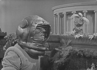 In the Neighborhood of Make-Believe, Lady Elaine is dressed and prepared for her lesson but grows tired of waiting for the deep sea diver to arrive. Seconds after she leaves to look for him, the diver arrives at the Museum-Go-Round. With his student nowhere to be found, the diver goes to the oak tree seeking information from X the Owl. X suggests that the diver look at the castle where Lady Elaine runs a motel. At the castle, King Friday directs "Mr. Deep Diver" back to the fountain outside the Museum-Go-Round where he believes Lady Elaine is waiting. Sure enough, he finds Lady Elaine there as she anticipates her diving lesson. Wearing the proper gear, Lady Elaine goes underwater but quickly emerges when she learns there are no pearls at the bottom of the fountain. Much to the surprise of her teacher, Lady Elaine emerges from her second dive with a full string of pearls. Mrs. Frogg immediately recognizes this as her own pearl necklace and the jewelry is returned to her by Lady Elaine. Back at the house, Mister Rogers concludes by singing Tomorrow. NotesApproaching the oak tree, the diving instructor finds a note on X the Owl's door: "Knock 5 times for X-formation." X promptly answers the door, but the instructor only knocks four times. Although an actual name for the diving instructor is not mentioned in this episode, King Friday addresses him as "Mr. Deep Diver." King Friday mentions that he was once an active deep sea diver himself. In fact, he recovered the pearls in his crown himself on a deep sea dive. Still, he shows no interested in joining the instructor for a dive: "I've given up diving. I just talk about it now." During the credits, the diving instructor gives several more pieces of jewelry to Mrs. Frogg -- presumably, more items found by Lady Elaine Fairchilde. Appearing In This Episode