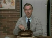 Mister Rogers makes a phone call to Mr. McFeely to ask about an upcoming delivery. As he waits on Mr. McFeely to arrive, he mentions that "people often get angry when they're hungry and also when they have to wait." Mister Rogers then sings What Do You Do With the Mad That You Feel. Mr. McFeely arrives with a delivery -- a package of tofu and a film about how tofu is made. After watching the film, Mister Rogers asks Mr. McFeely to deliver the bags of granola to his friends. In the Neighborhood of Make-Believe, Lady Aberlin agrees to help Queen Sara's "Food for the World" cause. Meanwhile, an unwanted guest stumbles upon X's newly-grown produce and helps himself to all he can eat. No one sees the vegetable thief which leads to confusion at X and Henrietta's tree when the empty garden box is discovered. As it turns out, Lady Elaine's new garden has been pillaged as well. Back at the house, Mister Rogers talks about a time when he was young and he took some cupcakes that his grandmother had made for some friends. Mister Rogers' grandfather had told him that he must have felt very lonely to have done something like that. This leads into the song A Lonely Kind of Thing. NotesIn this episode, we see one of the many examples of Fred Rogers communicating with young viewers on an appropriate level. As he touches on the subject of hunger, he describes the problem to viewers in direct, yet simple terms: "Did you know that some people are hungry and they don't have enough food to stop their hunger?" While it's no secret that Fred Rogers was quite a healthy eater, I don't think that his discussion of tofu was done to push his own agenda. Instead, I can only asssume that he was looking to do what he did so often by exposing viewers to topics and information that they would otherwise never encounter. Appearing In This Episode