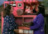 In the Neighborhood of Make-Believe, Queen Sara is just about to leave for work again as Lady Aberlin encourages her to talk to Prince Tuesday about her work. At the factory, Corney mentions that one of his employees has brought her baby to work because she could not find a sitter. Since the factory is so busy, Corney asks if Lady Aberlin will babysit. Princess Zelda arrives with a basket full of peanuts as Corney introduces Hilda Dingleboarder and her daughter Daphne (D.D.). Hilda mentions that the factory is busier than usual as they have received a big order for Peanut Rockits -- a rocking chair you rock in while you eat peanuts. At the tree, Lady Aberlin shows D.D. to Henrietta Pussycat who suggests that the factory start a caring center for children of its employees. Together they return to the factory to propose this idea to Corney. As they arrive, Lady Aberlin joins Princess Zelda in a Peanut Rockit and enjoys a peanut. Corney is interested in the idea and Henrietta, Lady Aberlin, and Princess Zelda agree to help. Back at the house, Mister Rogers sings I'm Taking Care of You before taking a call from Mr. McFeely who will be bringing something else by. While he waits, Mister Rogers plays I'm Taking Care of You on his melodica. Mr. McFeely arrives with two flower leis which he received from a craft class at the library. NotesThe poem Mister Rogers starts to read as he waits for Mr. McFeely is "How Do I Love Thee" by Elizabeth Barrett Browning. This episode is included on the DVD Kindness Collection. Appearing In This Episode
