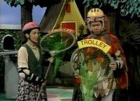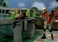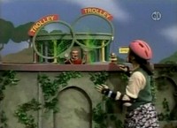 In the Neighborhood of Make-Believe, the Trolley is still moving very quickly while Lady Aberlin demonstrates her skates for Queen Sara. The two decide that a net could help them slow the Trolley down so Lady Aberlin seeks out the help of Lady Elaine Fairchilde. Lady Elaine provides two Trolley nets while Stephen Owl stops by wearing his safety gear. He and Lady Aberlin take a leisurely skate around the Neighborhood until they hear the Trolley approaching. As the Trolley nears, Lady Aberlin and Stephen Owl use their nets to temporarily slow the Trolley before it speeds away again. Back at the house, Mister Rogers talks about the importance of asking for help when learning something new. NotesYou've Got To Do It plays in the background multiple times throughout this episode. Museum Wares plays while Lady Aberlin waits for the Trolley nets. It's a Perfectly Beautiful Day plays as Lady Aberlin and Cousin Stephen skate around the Neighborhood of Make-Believe. Mister Roges and Stephen Lee skated at Romp 'n' Roll in Glenshaw, PA. The rink is empty because Mister Rogers was invited to visit before it was open for the day. Mister Rogers mentions to Mr. McFeely that he is still thinking of the video about people making strollers which was shown the previous day. Appearing In This Episode