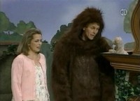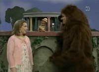 He then heads to the kitchen where he draws a rainbow before reflecting on a local place where children visit to play with toys. This is followed by a brief lesson on people being unique. Leading into make-believe, Mister Rogers uses common items from his kitchen to set the scene rather than his models. In the Neighborhood of Make-Believe, Lady Aberlin is talking to Queen Sara about Kevin Wendell Gorilla and suggests that he may not be a real gorilla. Meanwhile, at the clock, Daniel and Kevin agree to be friends as they sing You Are Special. After singing, Kevin Wendell Gorilla reveals that he is really Neighbor Aber wearing a gorilla costume. He was doing an experiment to see how people would treat him if he didn't look like himself. Back at the house, Mr. McFeely stops by to pick up Zak: The One-of-a-Kind Dog for the library and reads it with Mister Rogers. Outside, Mr. McFeely demonstrates a unique wind-up toy he calls a "speedy critter." NotesMister Rogers' reflection early in the episode was of scences from the Center for Creative Play in Pittsburgh, PA. The Center for Creative Play closed its doors in early 2008 [source]. The book read near the end, Zak: The One-of-a-Kind Dog, was written by Jane Lidz. The wind-up toy demonstrated by Mr. McFeely is actually called a Critter marketed by Kinkerland. As Mister Rogers walks to his kitchen, Let's Be Together plays in the background. As Lady Aberlin leaves the castle, A Perfectly Beautiful Day plays in the background. This episode is included on the It's a Beautiful Day Collection (DVD). Appearing In This Episode